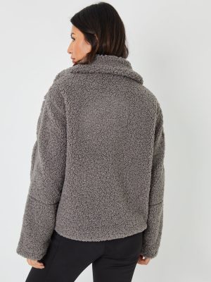 Galuxia Women’s Grey Funnel Neck Zip-Up Borg Fleece