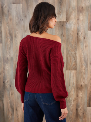 Galuxia Women’s Burgundy Chunky Knit Slash Neck Jumper