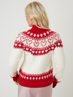 Galuxia Women’s Ecru Love Heart Fair Isle Knitted Jumper