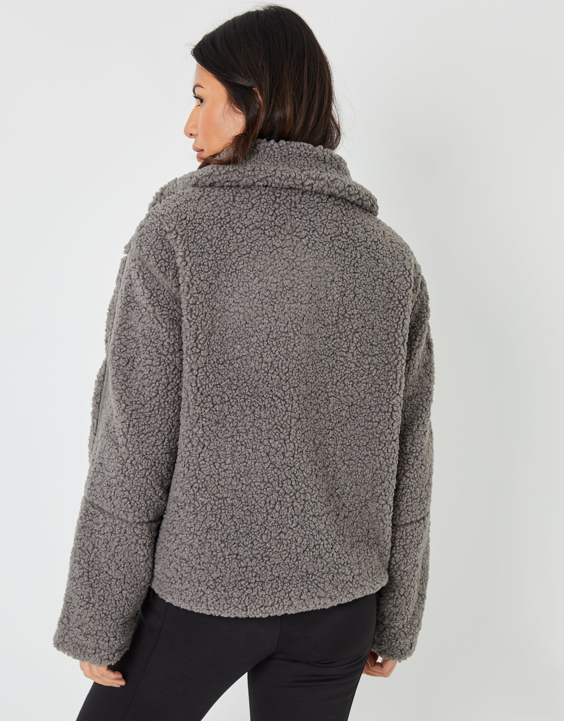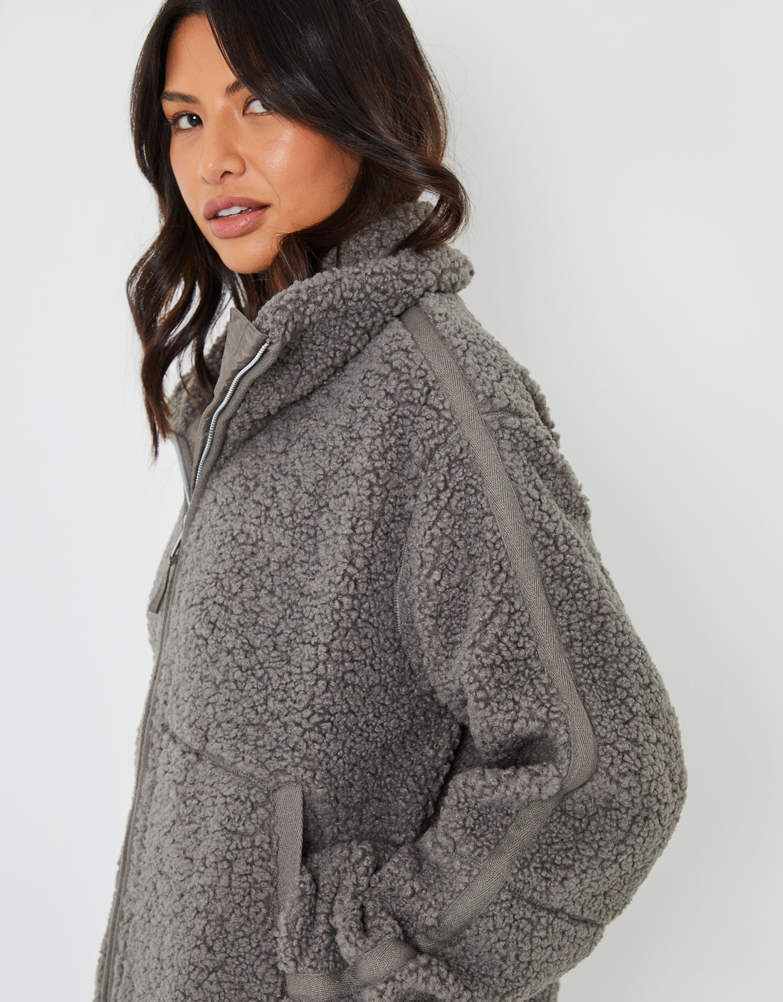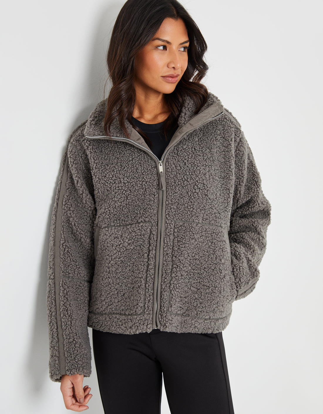 Galuxia Women’s Grey Funnel Neck Zip-Up Borg Fleece